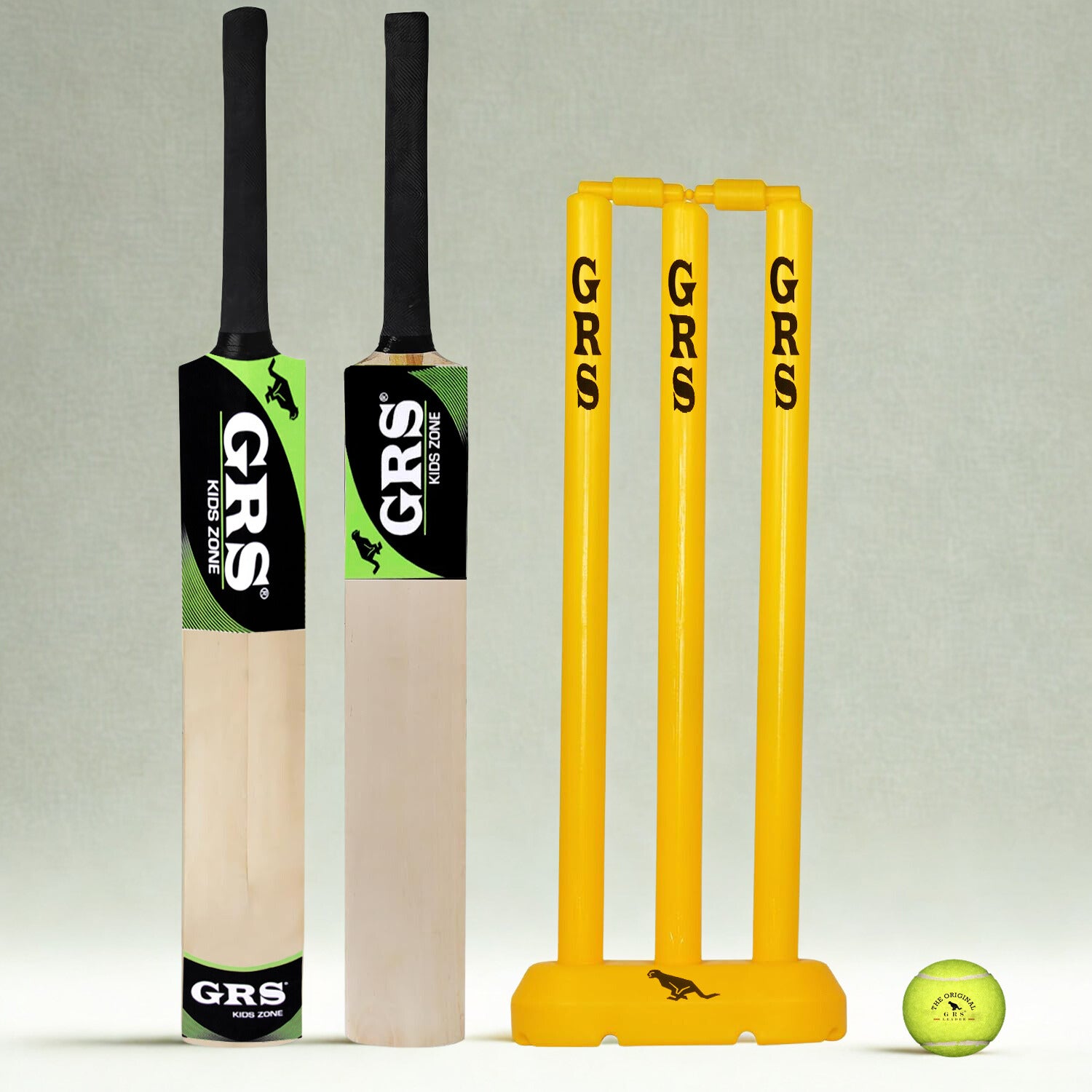 GRS Kids Zone Cricket Combo is designed for young players aged 6 to 10, featuring a size 3 wooden cricket bat crafted for durability and balanced play. The set includes a colorful plastic wicket and a tennis ball, providing everything needed for safe, skill-building cricket practice. Ideal for beginners, this combo encourages hand-eye coordination and active outdoor fun.